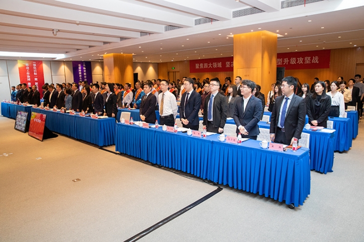 大会在雄壮的国歌声中拉开序幕,并进行先进典型表彰