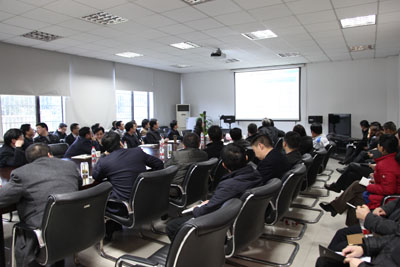 傅幼林做题为“‘创新,突破’开拓纺化事业发展新局面”2011年总结2012年计划。报告围绕2011年工作总结,外部形势分析,2012年工作指导思想及年度绩效目标,2012年度重点工作及策略,2012年目标、指标分解五个方面展开。